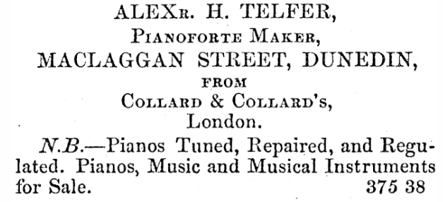 John Triphook was the son of Thomas Triphook. He was born in Wellington but later lived in Christchurch where he had a music business in partnership with his father and brother from 1876 until 1877. He then moved to Oamaru where he taught the piano and violin. He later worked in Spensley’s Music Warehouse in Christchurch for 12 years. Following a move to Whangarei he taught the piano and the violin, and was choirmaster and organist at the Anglican Church.