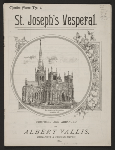 The reasons for Vallis’ migration is not known but on his arrival he took the position of organist and choirmaster at the Congregational Church in Dunedin. From there he moved to St Matthew’s Church and finally to his most important position at St Joseph’s Catholic Cathedral. He was also the official pianist and organist to the New Zealand and South Seas Exhibition, held in Dunedin from 1889 to 1890, a successful music teacher, musical director of the St Cecilia Society and foundation member of the Otago Society of Organists.